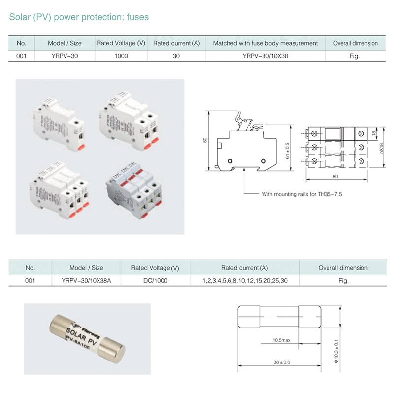 The 3 Pole Solar Panel Fuse Holder is specially designed to protect photovoltaic strings. When the solar panel or inverter causes an overload or short circuit, the DC fuse box will trip immediately to protect the photovoltaic panel. It can also be used to protect other electrical components in the DC circuit.