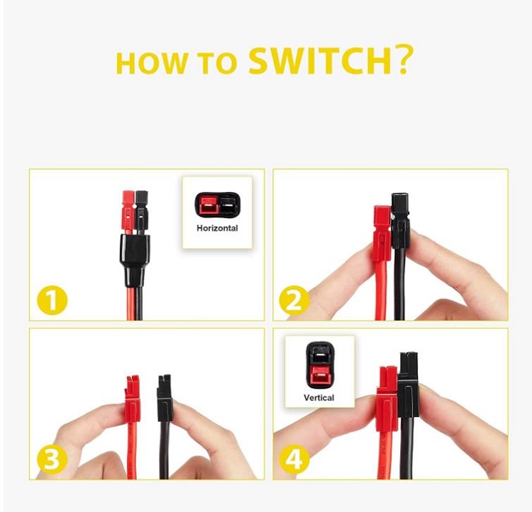 Input and output: Solar cable compatible with Anderson Power Pole 45A.