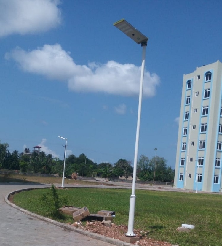 (6) Solar street lights are used in village roads and country roads, and are currently one of the main applications of solar photovoltaic lighting devices. The light sources used are low-power high-pressure gas discharge (HID) lamps, fluorescent lamps, low-pressure sodium lamps, and high-power LEDs. Due to its overall power limitation, there are not many cases applied to urban arterial roads. With the complement of municipal lines, solar photovoltaic lighting street lights will be more and more applied on the main road.