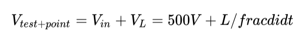 Under normal working conditions, the voltage at test point is maintained at a stable state of 500V. However, if the switch q is suddenly disconnected, a high voltage surge will occur at test point due to the reverse electromotive force effect due to the sudden change of inductive current.
