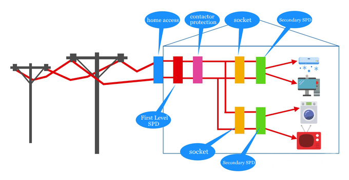 The first-level surge protection device is usually installed at the entrance of a house or building. It will protect all equipment from the entrance connection point from being persecuted by surges. Usually, the capacity and volume of the first-level surge protector are both It is very large and expensive, but it is essential.