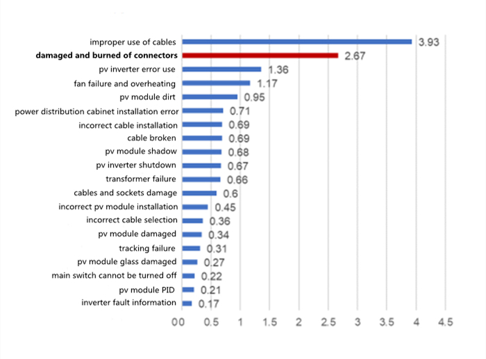 According to a report released by the “Solar Bankability” project team of the European Union’s Horizon 2020 plan, connector damage and burnout rank second in the loss of power generation revenue caused by the risk of power station TOP 20 technical failure.