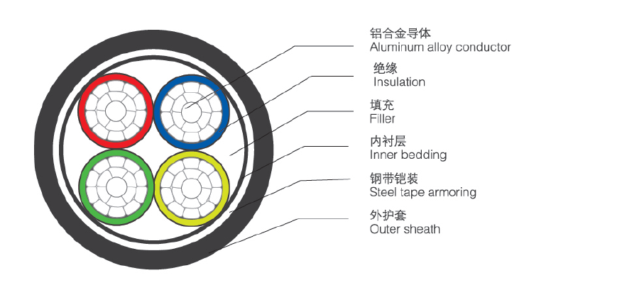 Comparing with cables of the same specification, the conductivity of aluminum alloy conductor is 61% of the most commonly used reference material copper, the specific gravity of aluminum alloy is 2.7g/cm³, and the specific gravity of copper is 8.9g/cm³. Under the same volume, aluminum The weight of the aluminum alloy power cable is about one-third of that of copper. According to this calculation, the weight of the aluminum alloy power cable is half of the copper cable with the same current carrying capacity under the premise of meeting the same electrical conductivity.