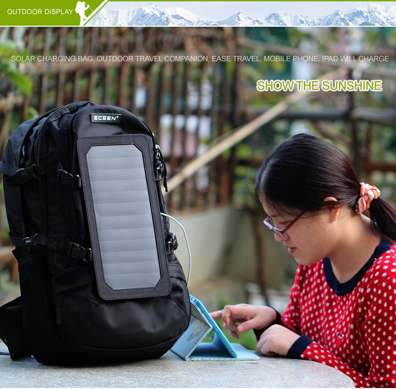 6.5 WATTS SOLAR PANEL – Made of 6.5 Watts solar panel built into backpack, Powered for thousands of devices that charge from USB, including various handheld devices and smartphones